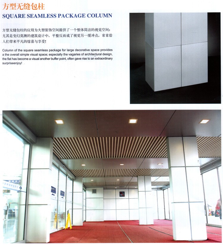 方形無縫包柱鋁單板特點: